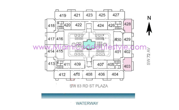 Colonnade is comprised of two ten-story luxury condo towers located at 8390 SW 72nd Avenue and 8395 SW 73rd Avenue. The entire project is surrounded by gardens, tree-lined pedestrian walkways and a park.
